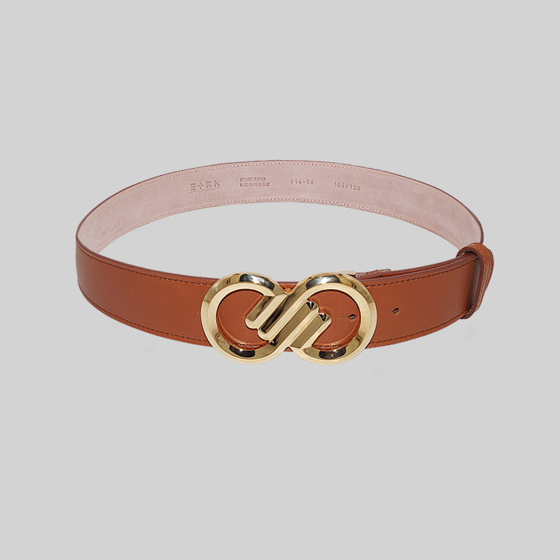 Beautifully hand-crafted luxury calfskin belt designed to perfectly fit your style and lifestyle. Adorned with solid brass Infinitude buckle in gold-toned finish for an exquisite and timeless look. Wear this black leather belt however way you like, it’s a statement piece.