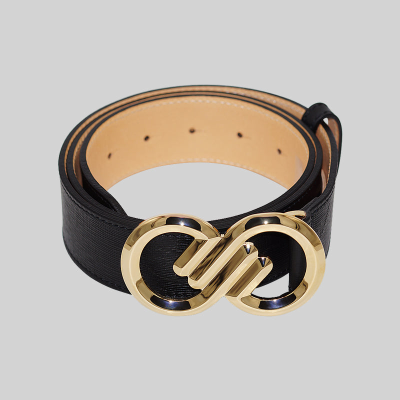 Beautifully hand-crafted luxury saffiano leather belt designed to perfectly fit your style and lifestyle. Adorned with solid brass Infinitude buckle in gold-toned finish for an exquisite and timeless look. Wear this black leather belt however way you like, it’s a statement piece.