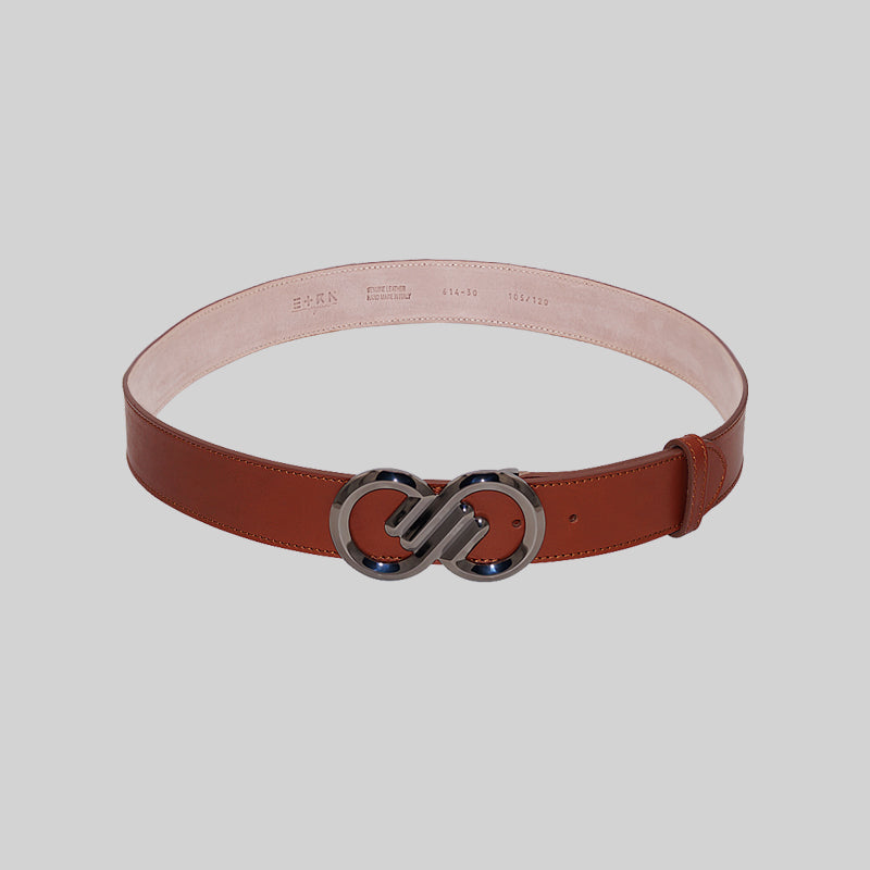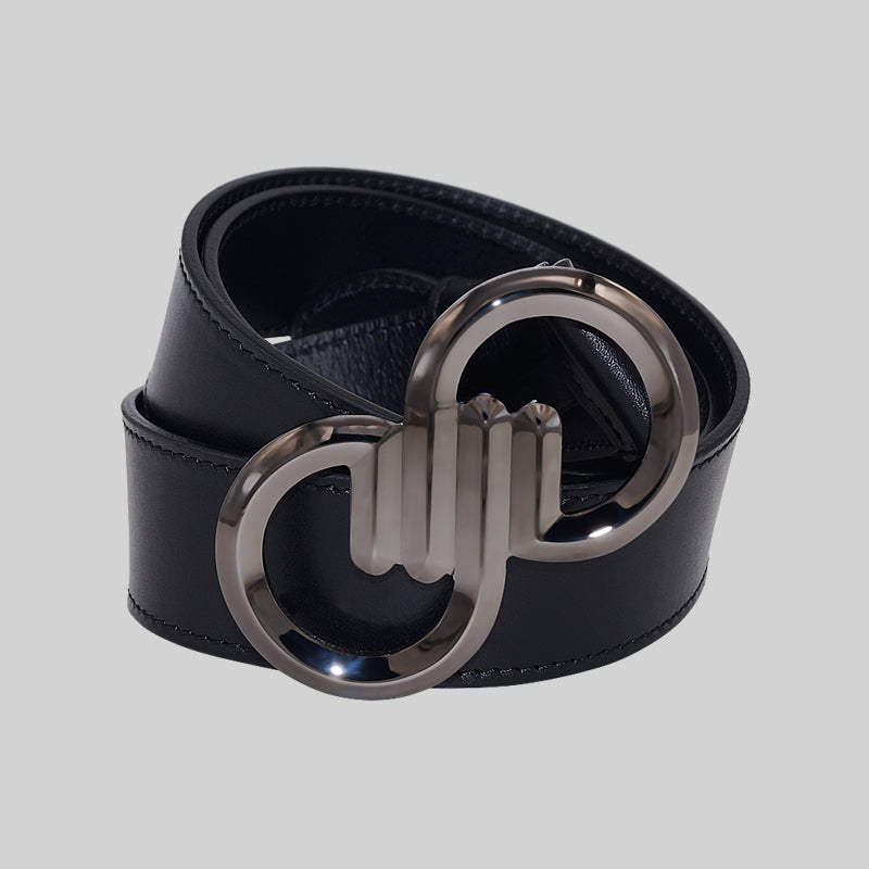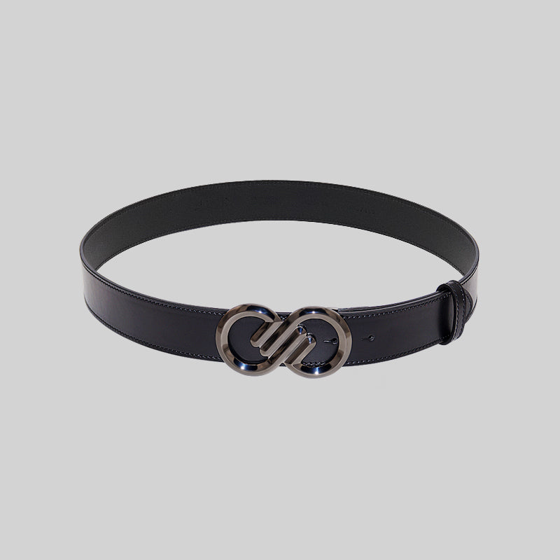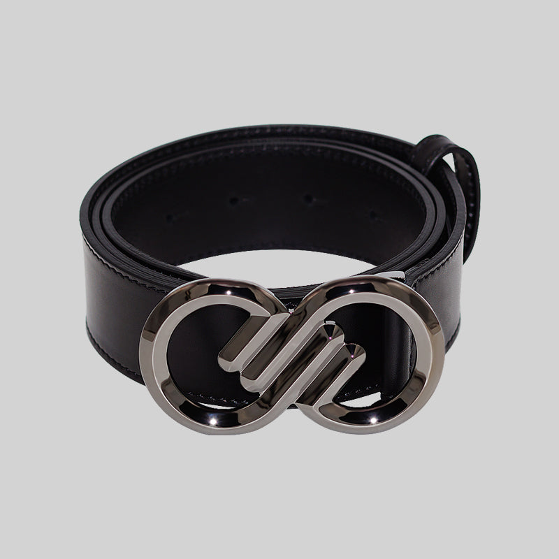 Beautifully hand-crafted luxury calfskin belt designed to perfectly fit your style and lifestyle. Adorned with solid brass Infinitude buckle in palladium finish for an exquisite and timeless look. Wear this black leather belt however way you like, it’s a statement piece.