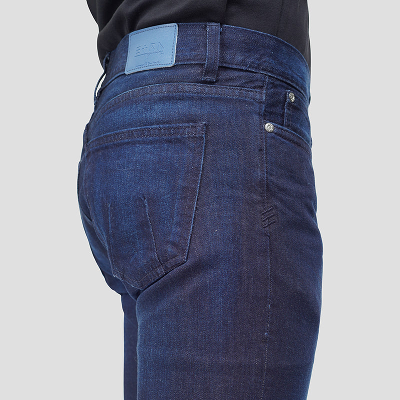 Slim fit 5 pocket regular rise jeans for men in 100% cotton. This pant was crafted for utmost comfort and style, with signature ETRN finishes.