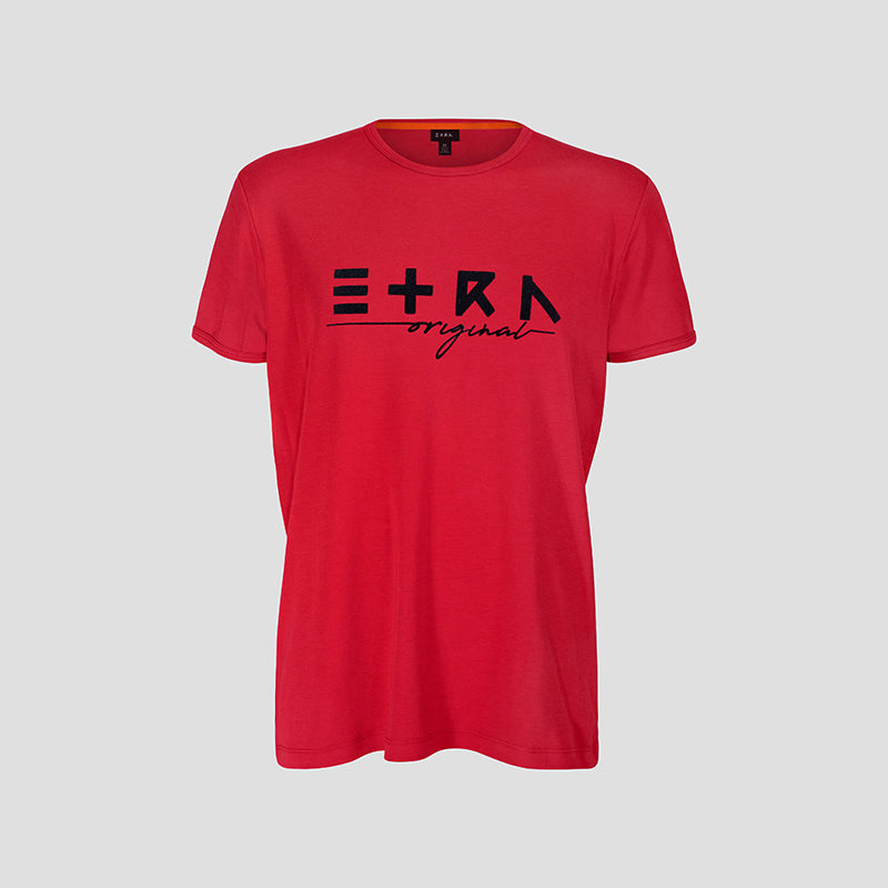 Indulge in luxury with our "ETRN Original" Flock Print Tee for men. The vibrant red color and soft, comfortable fabric will elevate your style and make you stand out in a crowd. Perfect for any occasion, this premium t-shirt is a must-have for any modern man's wardrobe.