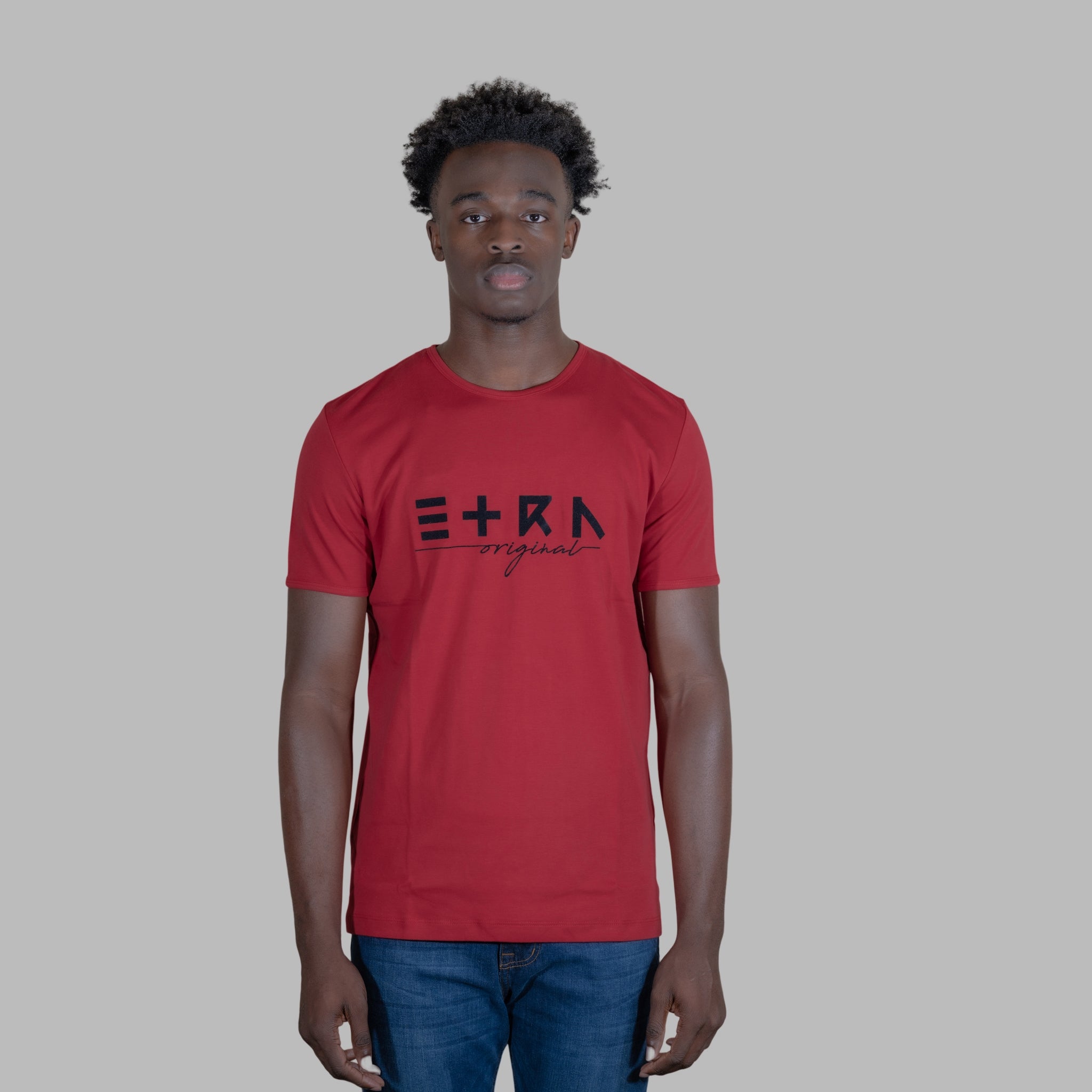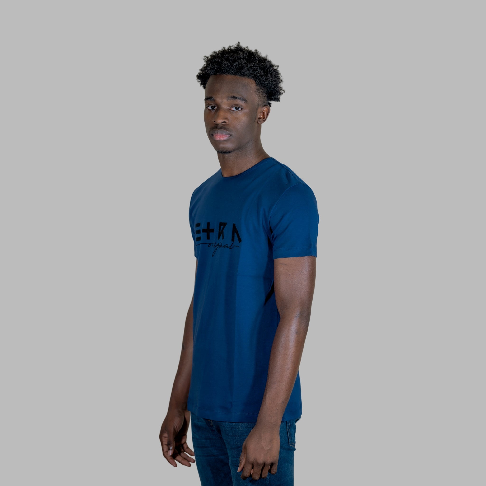 Indulge in luxury with our "ETRN Original" Flock Print Tee for men. The vibrant blue color and soft, comfortable fabric will elevate your style and make you stand out in a crowd. Perfect for any occasion, this premium t-shirt is a must-have for any modern man's wardrobe.