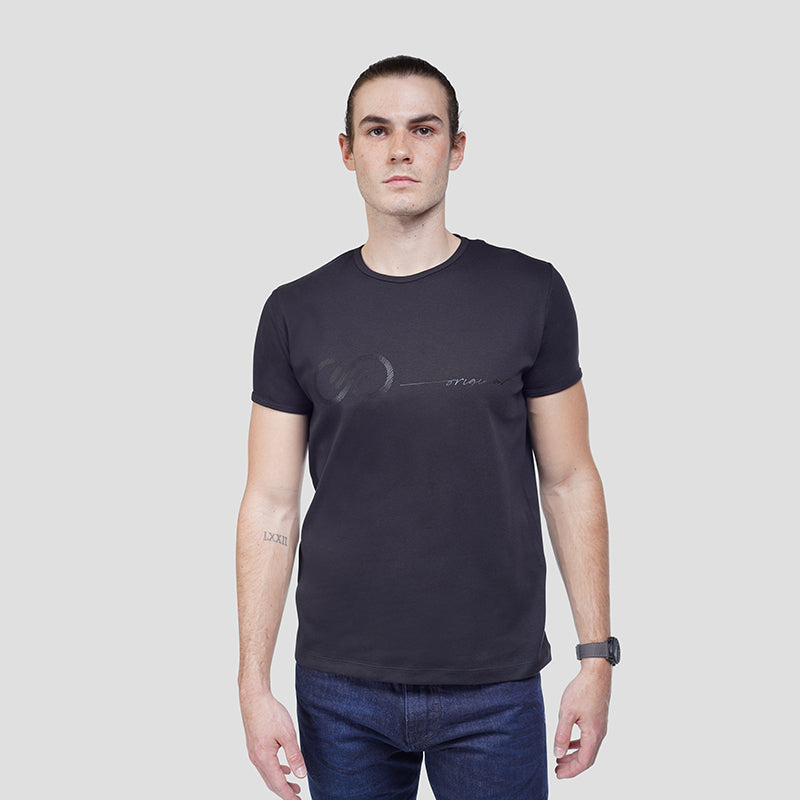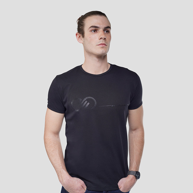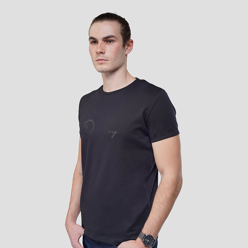 Elevate your wardrobe with our Signature Tee for men. This monochrome black t-shirt exudes class and sophistication, making it a truly unique addition to your collection. Crafted with the finest materials and impeccable attention to detail, this tee is a must-have for the modern man. Experience luxury with every wear.