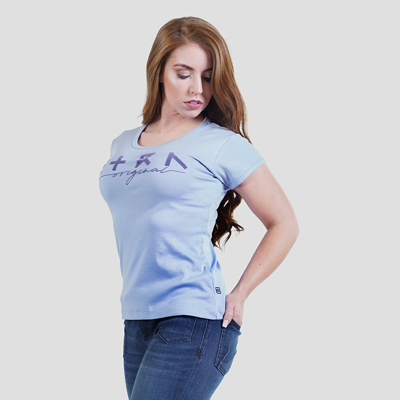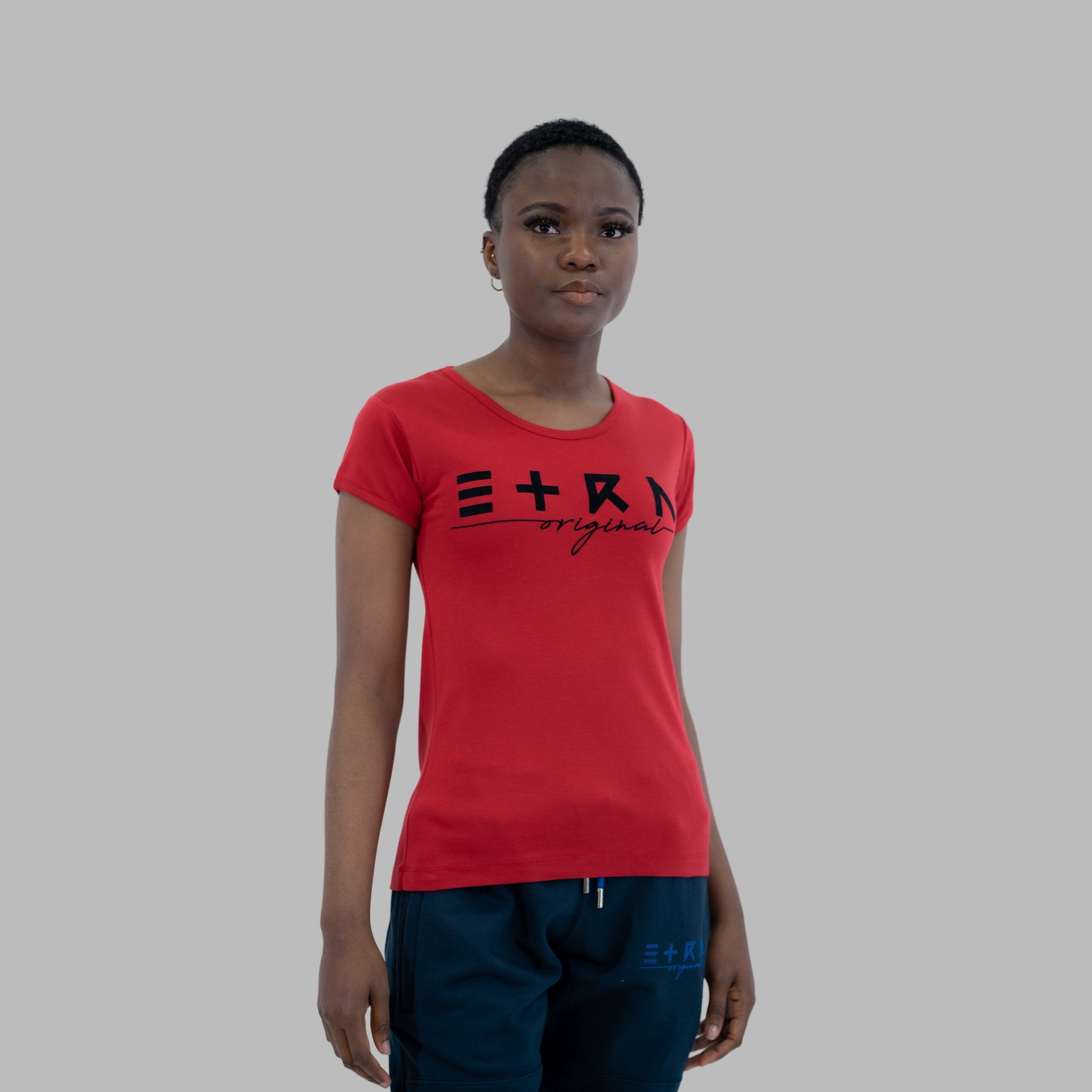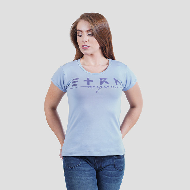 Indulge in luxury with our "ETRN Original" Flock Print Tee for women. The vibrant blue color and soft fabric will elevate your style and make you stand out in a crowd. Perfect for any occasion, this premium t-shirt is a must-have for every modern woman.