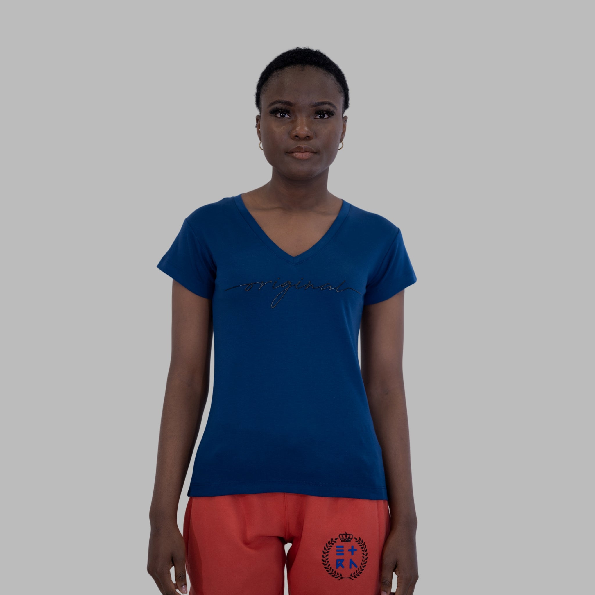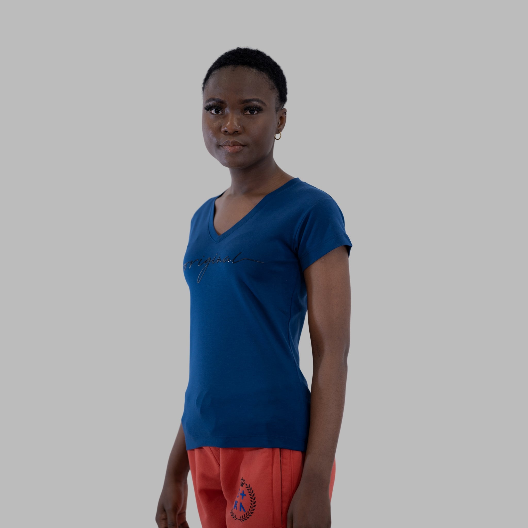 Introducing our exclusive Original V-Neck Tee, designed for the stylish woman. Simple in style, yet uniquely made for the modern woman. The neckline of this t-shirt is designed to perfectly showcase your neck accessories. Elevate your wardrobe with this one-of-a-kind piece.